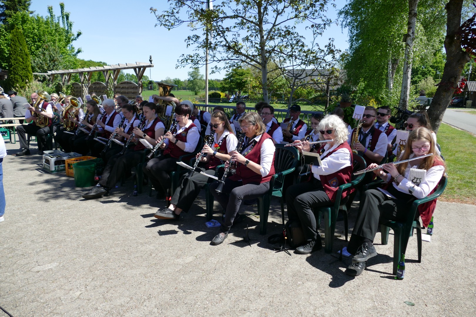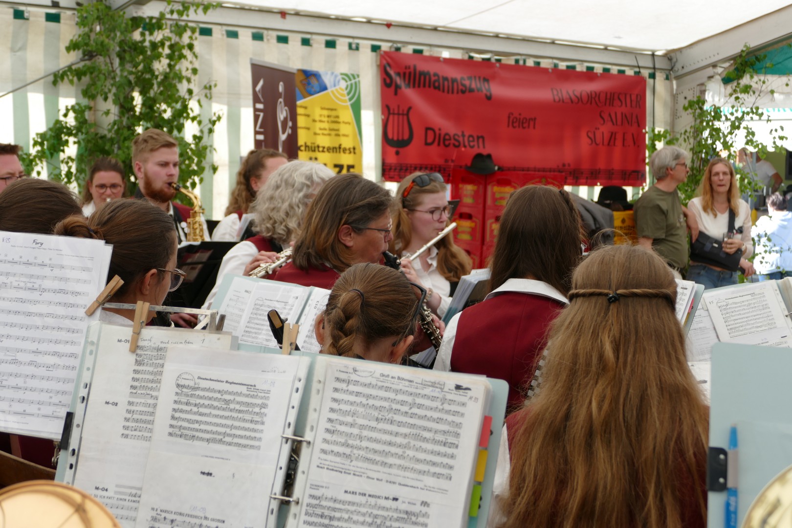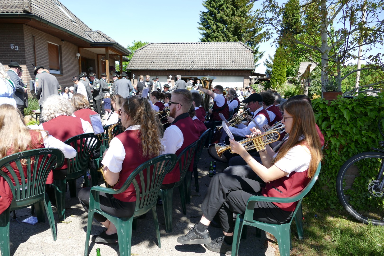 Saisonauftakt 2025 - wie immer auf dem Diester Schützenfest. In diesem Jahr war er allerdings etwas besonders für uns, denn wir haben zum ersten Mal unser neues Saisonprogramm, "Walking on Sunshine" zum Besten gegeben. Abgeholt wurde der alte König "Sascha, der Mäusekönig" und dann ging es am Sonntag zum neuen König Helge. Das Wetter spielte mit, die Getränke haben geschmeckt und die Hofkapelle zu Diesten hatte gute Laune. Was will man mehr!